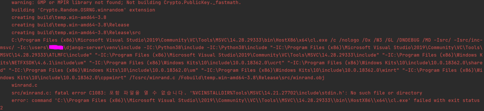[Django, Issue] Running setup.py install for pycrypto ... error. ERROR : Command errored out with exit status 1: 본문