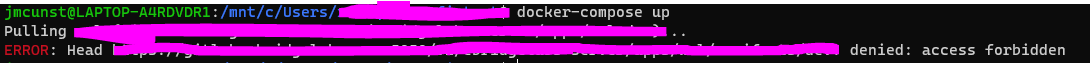 docker-compose up을 하면서, image를 pulling하는 과정에서, credentials 에러 발생.