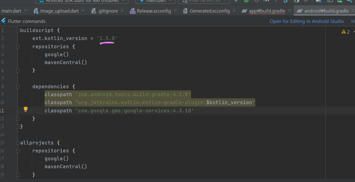 android > build.gradle 에서 buildscript 안에 ext.kotlin_version 을 높여줌.