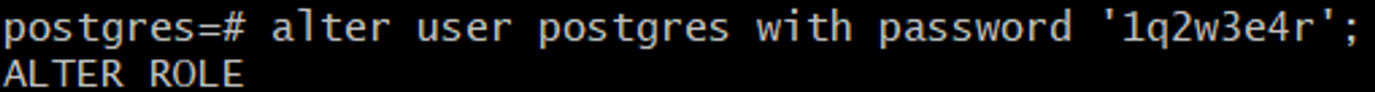 다음은 비밀번호를 변경해주겠습니다. 원래 psql 명령어 입력시 비밀번호를 물어봅니다. 하지만, 지금 비밀번호가 설정이 안되어 있어서 바로 접속이 가능했던 것입니다.