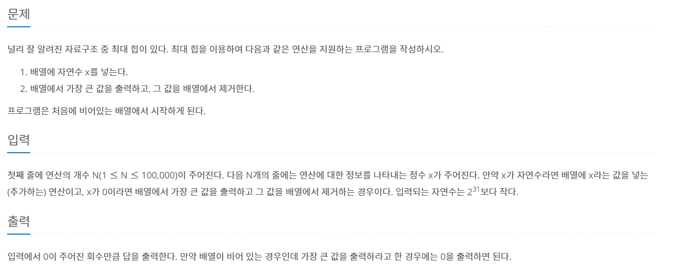 백준 단계별 풀기에서 우선순위큐 첫 번째 문제이다.