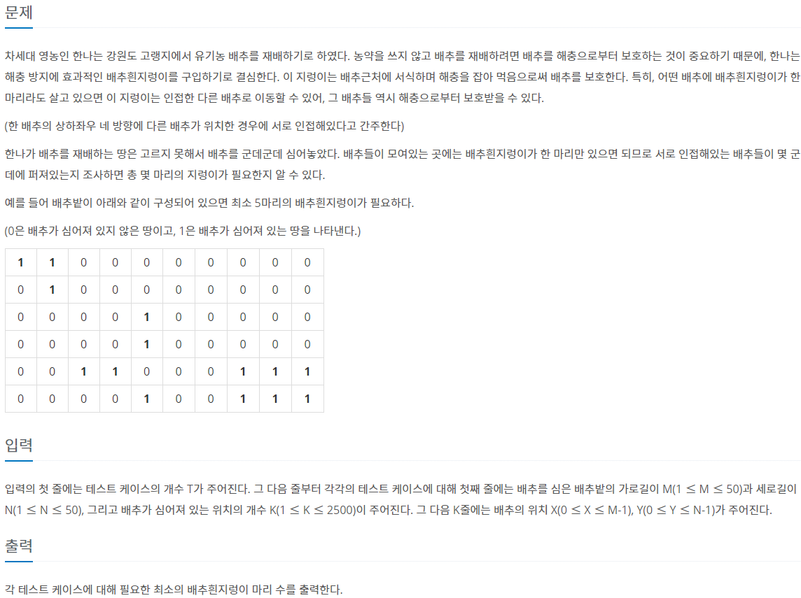 [Baekjoon, Python] 1012번 : 유기농 배추 본문