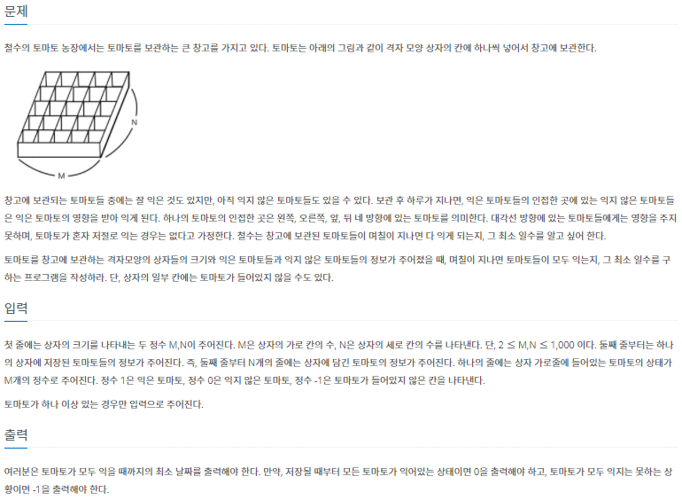 [Baekjoon, Python] 7576번 : 토마토 본문