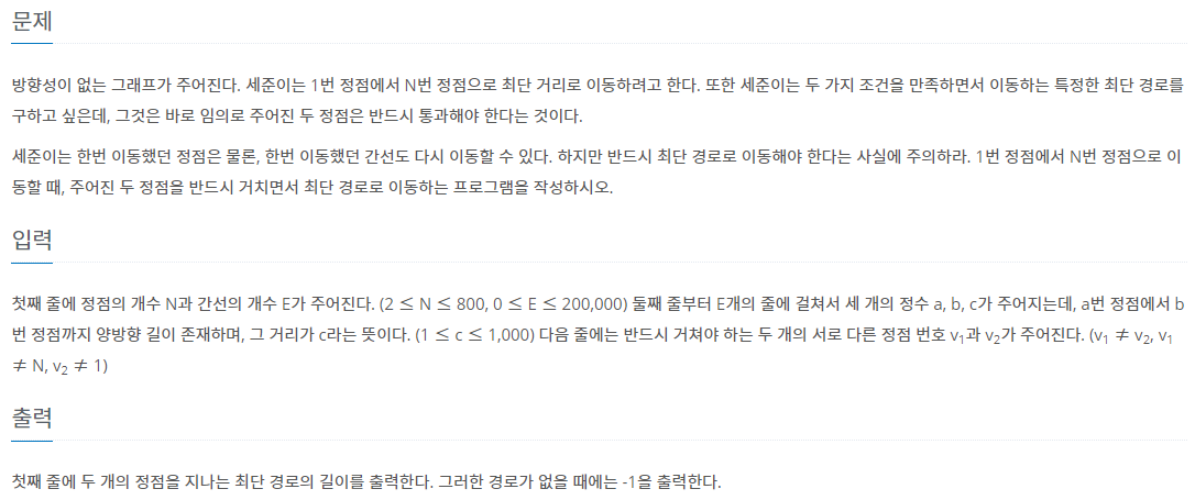 [Baekjoon, Python] 1504번 : 특정한 최단 경로 본문